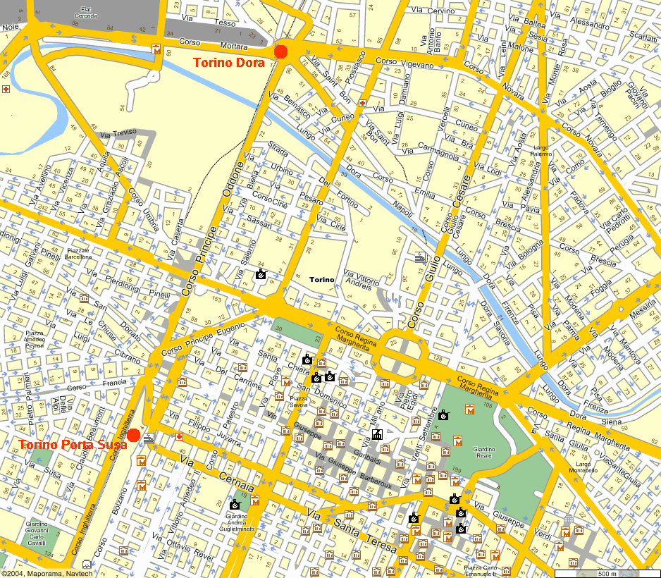You can either take the train or the bus. Trains leave at hh:19 and hh:49 and arrive after 20 minutes to Torino Dora (a minor railway station) from Torino Dora take tram 10, get off at after 9 stops at corso Stati Uniti. Train tickets cost € 3 and have to be stamped before you get in. The same ticket is also valid for public transportation in Torino, the validity is 1 hour. Tickets can be bought at the desk of the tourism office in the arrival hall or from the machine in the station. The last train is at 20h19, then you have to you have to take the bus. Tickets for the bus can be bought from the machine in the arrival hall at the airport € 5.00. The bus stops at Porta Susa and Porta Nuova. A taxi to Torino costs € 30 (+10% at night).